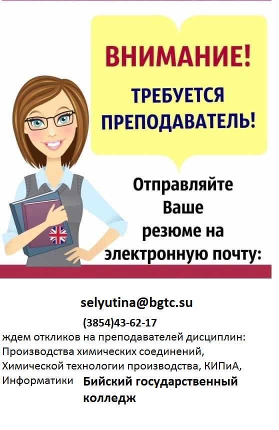 Главная / Объявления Трудоуcтройство / Внимание! Требуется преподаватель