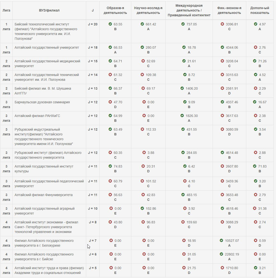 На краевом уровне Бийский технологический институт укрепил свою позицию, заняв первую строчку в рейтинге среди 17 вузов и филиалов Алтайского края. Этот факт демонстрирует его безусловное лидерство и превосходство над головными вузами Барнаула, что не может не радовать студентов, преподавателей и всех работников института.