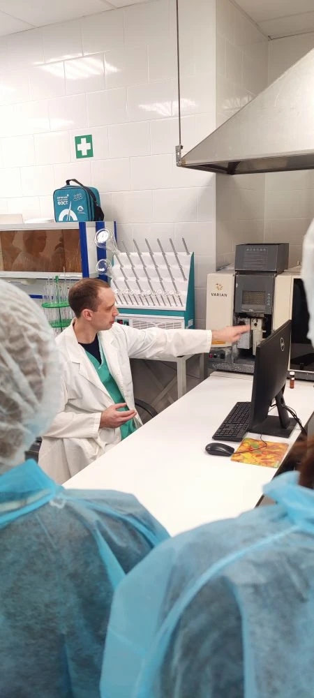 Однако производство – это только половина успеха. Студенты побывали на складе готовой продукции, поразившись масштабам логистики, а затем отправились в святая святых – Химико-аналитическую лабораторию отдела контроля качества. Начальник лаборатории Ольга Сергеевна Войтенко (в первый день) и руководитель группы валидации Ольга Олеговна Синагатуллина (во второй) показали, как с помощью современных методов анализа проверяется чистота и эффективность каждой партии.
