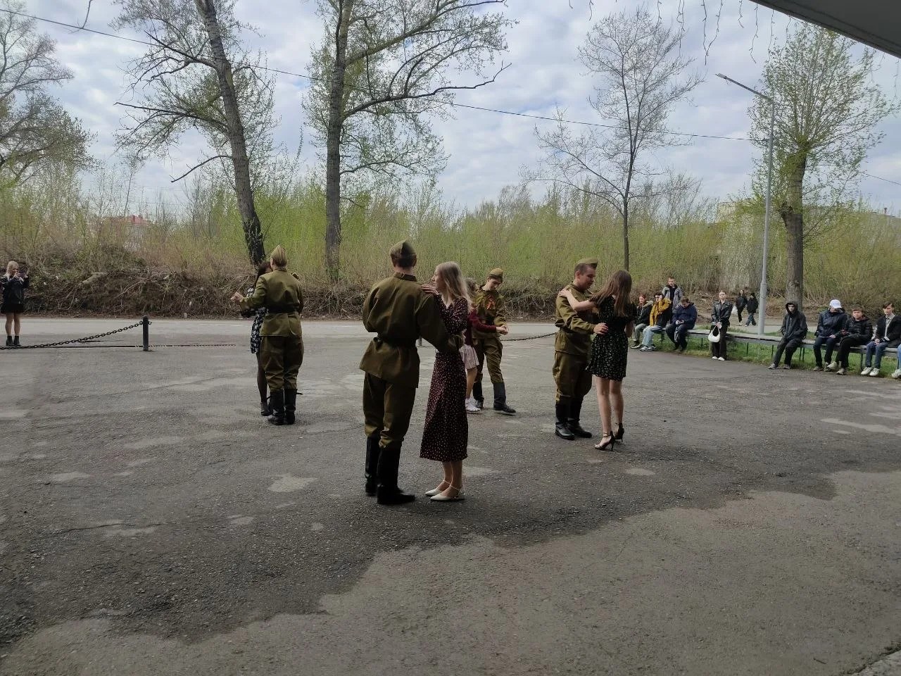 Мероприятие, посвященное очередной годовщине победы советского народа в Великой отечественной войне, открыла музыкальная часть. Пары первокурсников перед главным корпусом БТИ танцевали фокстрот – танец, так популярный в предвоенное время.